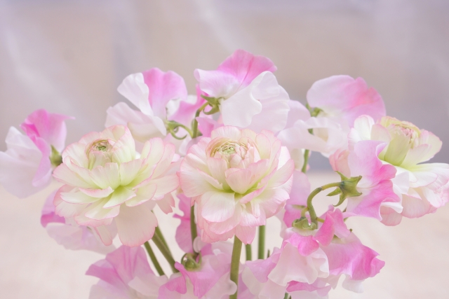 香りの苦手な方はスイートピーのような落ち着いた色のお花もオススメ!