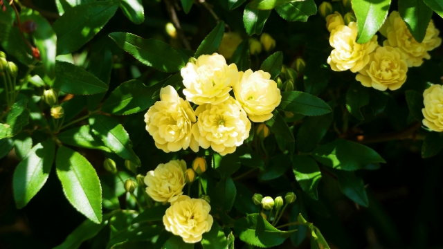 普通のバラより管理がしやすく、成長度合いや花が咲く数などは普通のバラに負けない特徴があるモッコウバラ!一番のポイントはトゲがないこと!小さいお子さんやペットと一緒に暮らしている方でも安心して楽しむことができます!マイナスポイントとしては普通のバラに比べて花が小さく、色の種類が少ないところだと感じます!